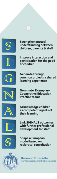 På baggrund af dette besluttede universiteter i syv lande – Tyskland, Danmark, Grækenland, Ungarn, Rumænien, Sverige, og Island – at etablere projektet SIGNALS. Akronymet SIGNALS blev valgt, fordi det på engelsk belyser de forskellige trin, som de deltagende lande tager ansvar for i denne kollaborative læringsrejse. En dansk oversættelse kunne lyde: